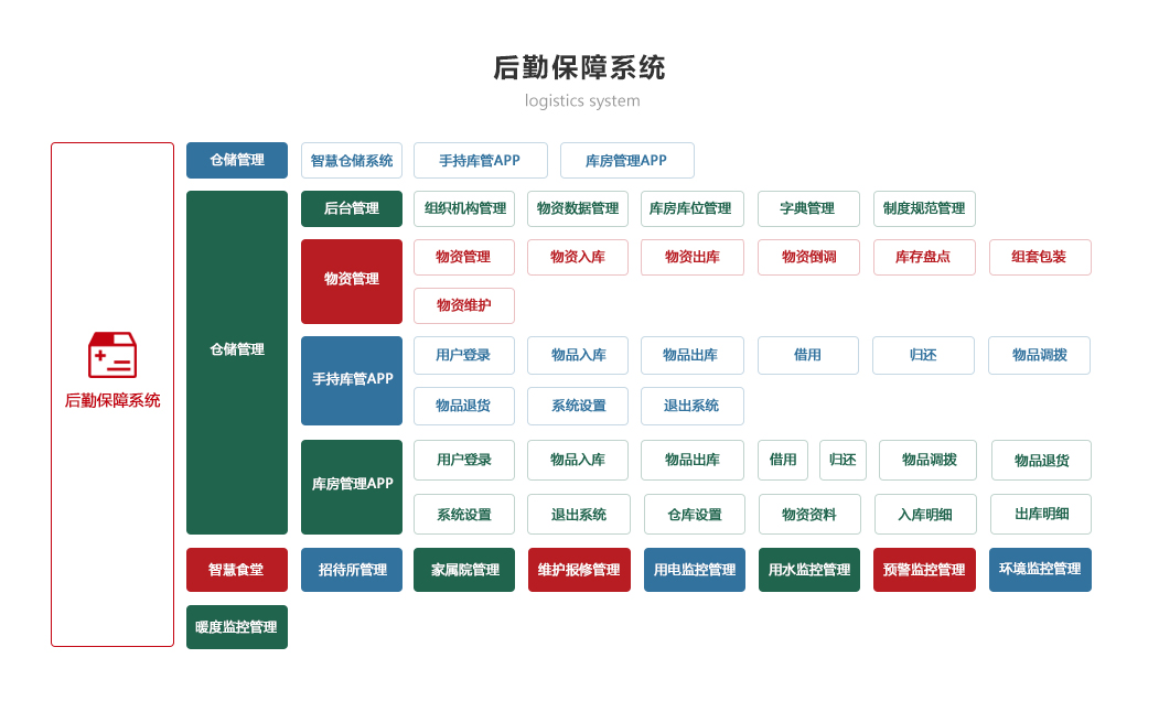 部隊管理系統 機關辦公系統 軍事教育系統 智慧政工系統 軍事訓練系統 后勤保障系統 智慧安防系統 裝備管理系統